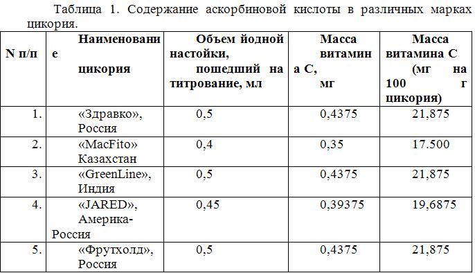 Инструментальные исследования химического состава цикория различных марок и его алияние на организм человека