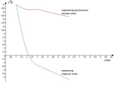 Рис.2. График зависимости температуры внутри дома и снаружи.