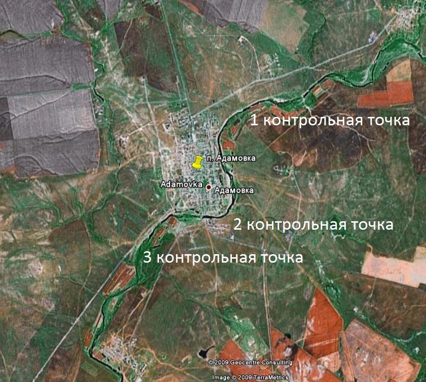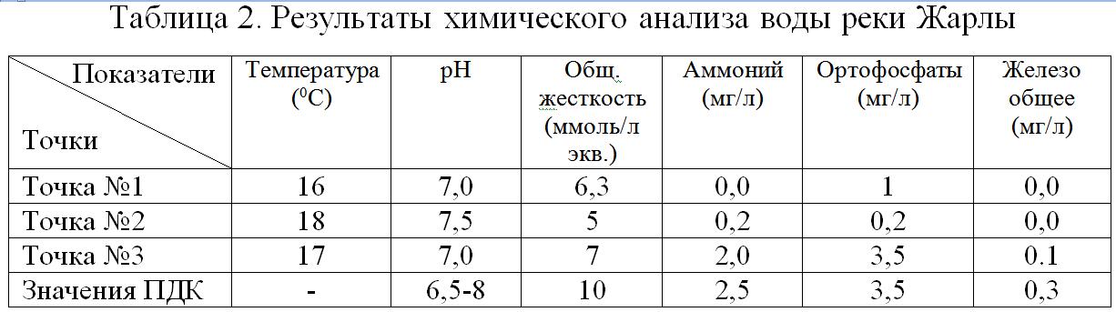 Рисунок. Карта схема точек взятия проб воды в реке Жарлы