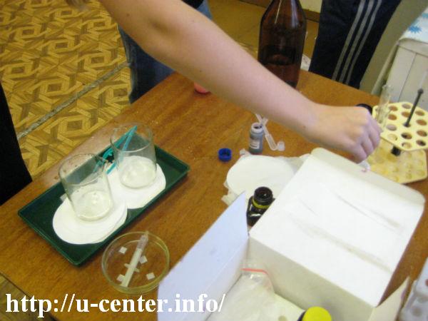Ребятам очень понравилась и запомнилась работа с тест-системами по определению тяжелых металлов (см. фото1-4).