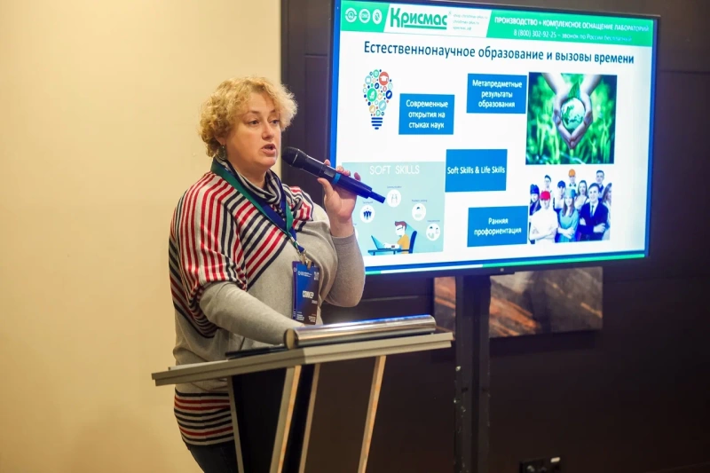 Помимо участия в выставке, Евгения Константиновна Орликова выступила с докладом «Система интегрируемых практикумов на основе готовых решений группы компаний «Крисмас» для предметов естественно-научного цикла». Он вызвал живой интерес у аудитории и способствовал укреплению репутации компании как эксперта в области образовательных технологий.