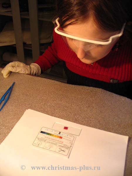 1. Отрежьте рабочий участок индикаторной полоски размером около 5х5 мм.