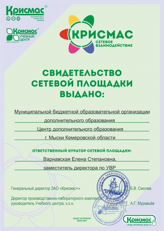 - о научно – методическом сотрудничестве и совместной деятельности с научно–производственным объединением «Крисмас+»;