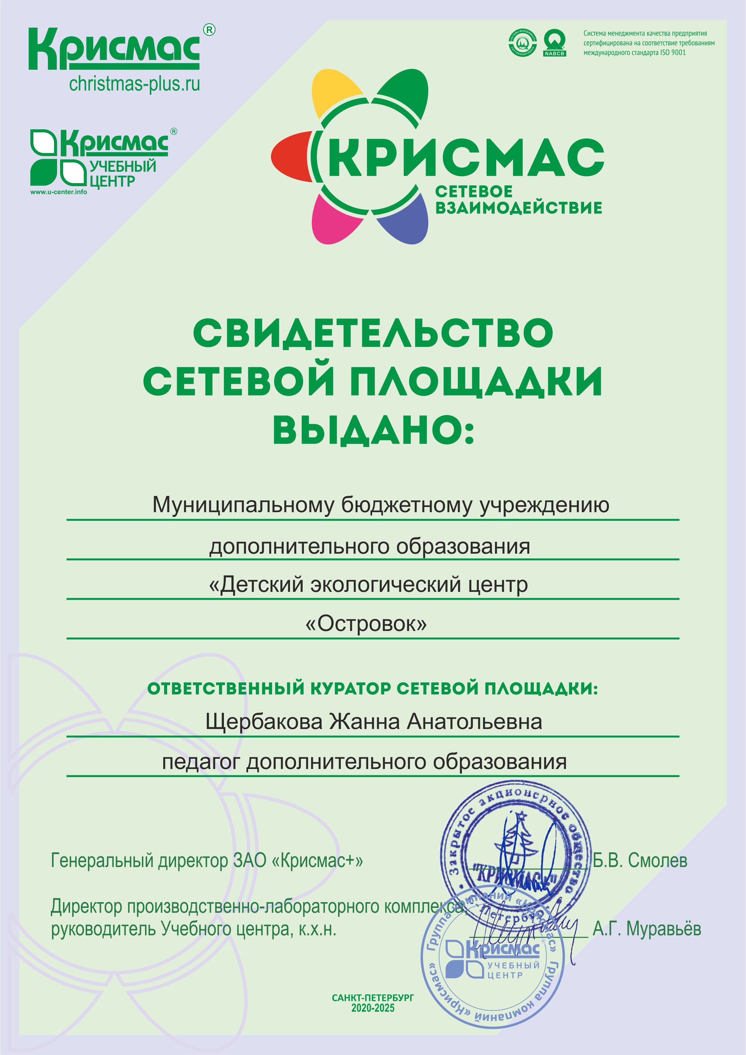 Свидетельство сетевой площадки
